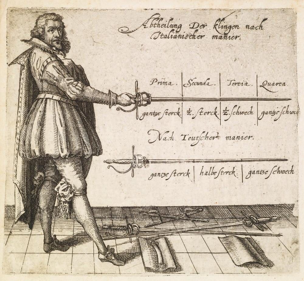 Esiste una diversa classificazione italiana per le lame più lunghe di Spade a Striscia nei trattati schermistici più tardi, che fa riferimento a una suddivisione in quattro parti (parte prima, seconda, terza e quarta), ma di norma non viene applicata nelle altre spade.
