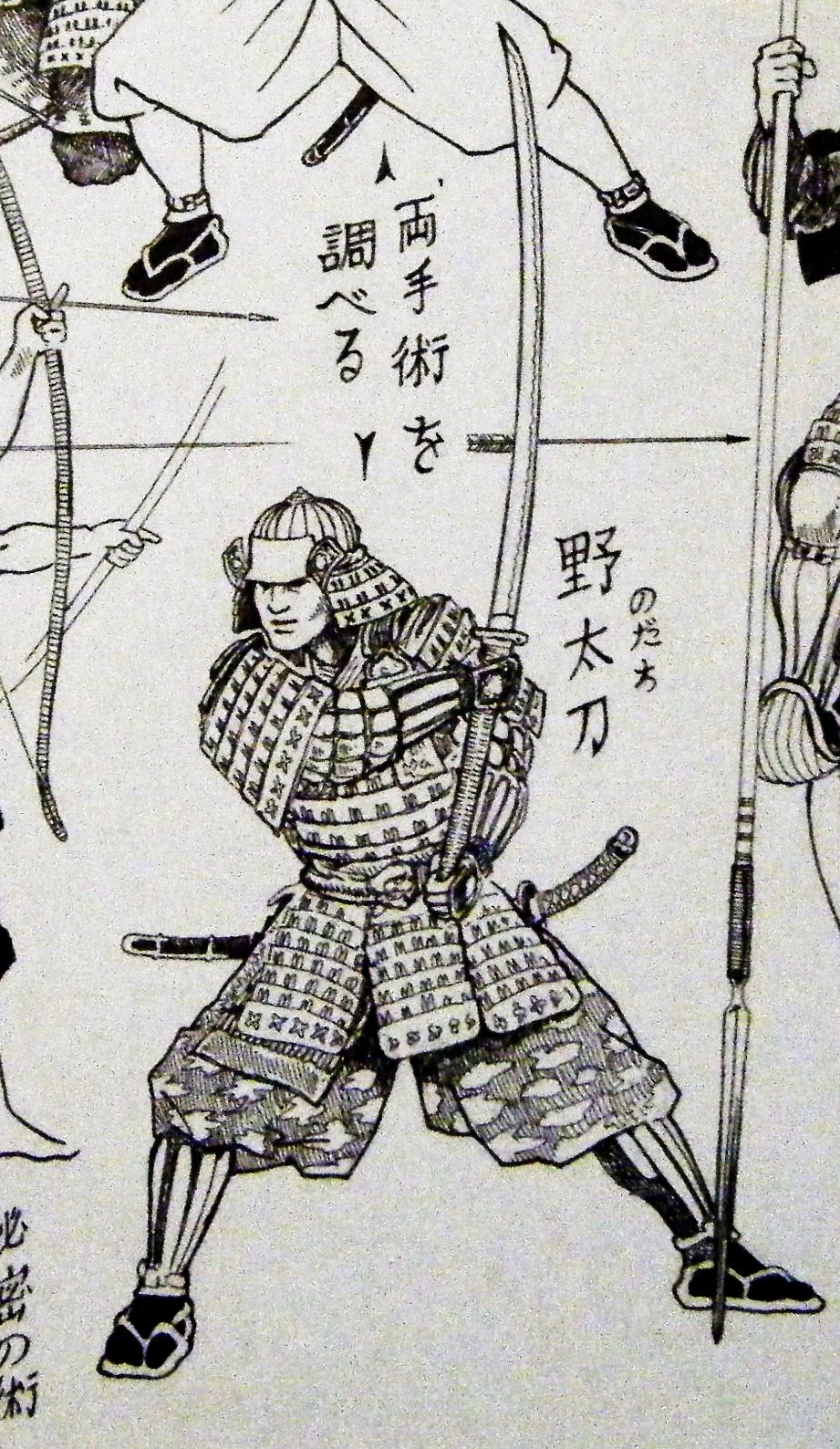 Questo potrebbe sembrare un limite della grande spada giapponese, e in un certo senso lo è, se raffrontata ad alcuni tipi di spada di simile lunghezza, ma molto più leggeri; tuttavia, se pensiamo che si tratta di un’arma da usare prevalentemente in guerra, dobbiamo tenere conto della grande potenza esercitata da colpi del genere, che avrebbero facilmente rotto qualsiasi guardia, tenuta con spade o anche con armi inastate. La maggior parte degli avversari non potrebbe far altro che schivare l’attacco, sul campo di battaglia, e il mero fattore psicologico di dover affrontare un simile contendente potrebbe essere debilitante.